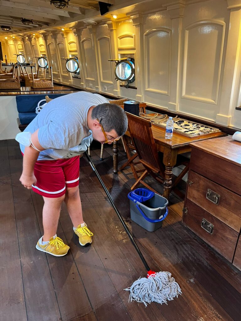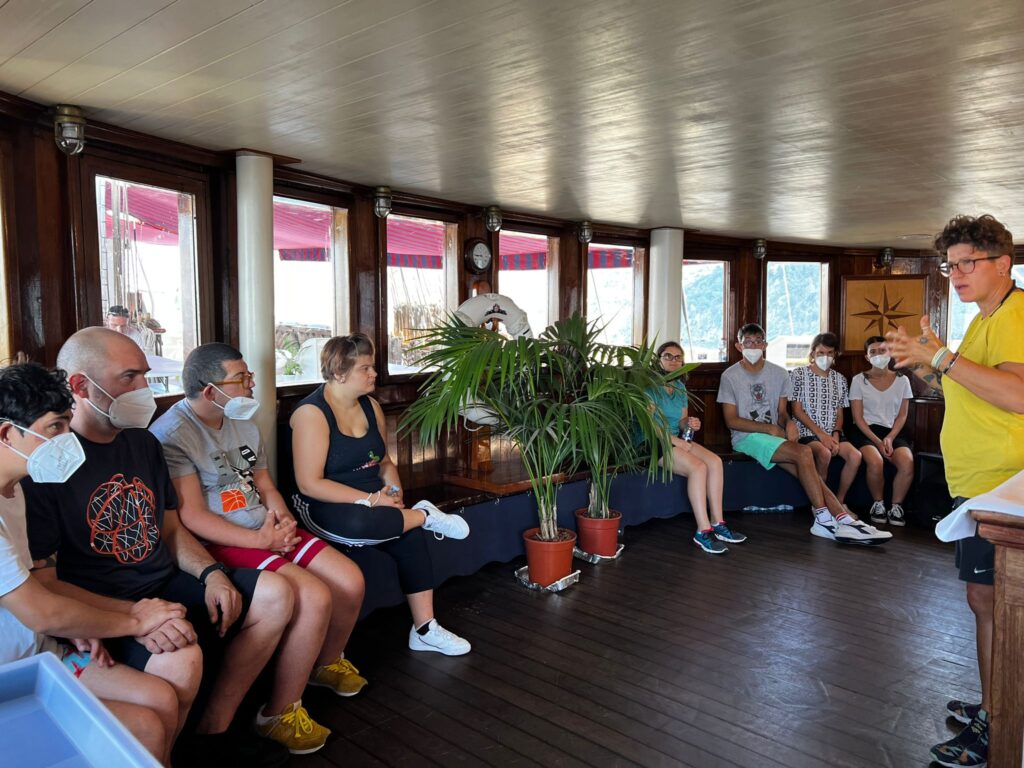 Nei 5 giorni di traversata c’è stato un fitto cartellone di attività, in parte previste dal programma di Fondazione Tender to Nave Italia e in parte organizzate da La Casa delle Luci: laboratorio di nodi, salita a riva e laboratori LISguistici che hanno coinvolto anche l’equipaggio della Marina Militare a bordo, oltre a una suddivisione di compiti propri della vita di bordo – come la preparazione della colazione, il lavaggio della nave, la sistemazione della sala pasti – che ha coinvolto i ragazzi stessi impegnati su “La Nave dei Segni” a vivere sì un’esperienza unica ma anche una vera e propria parentesi di vita autonoma lontano da casa.